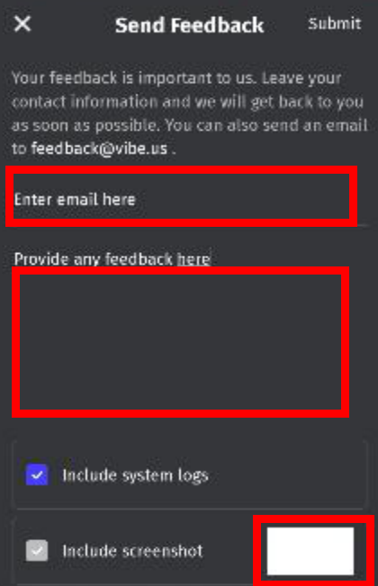 How to send feedback for Vibe Board 55"
