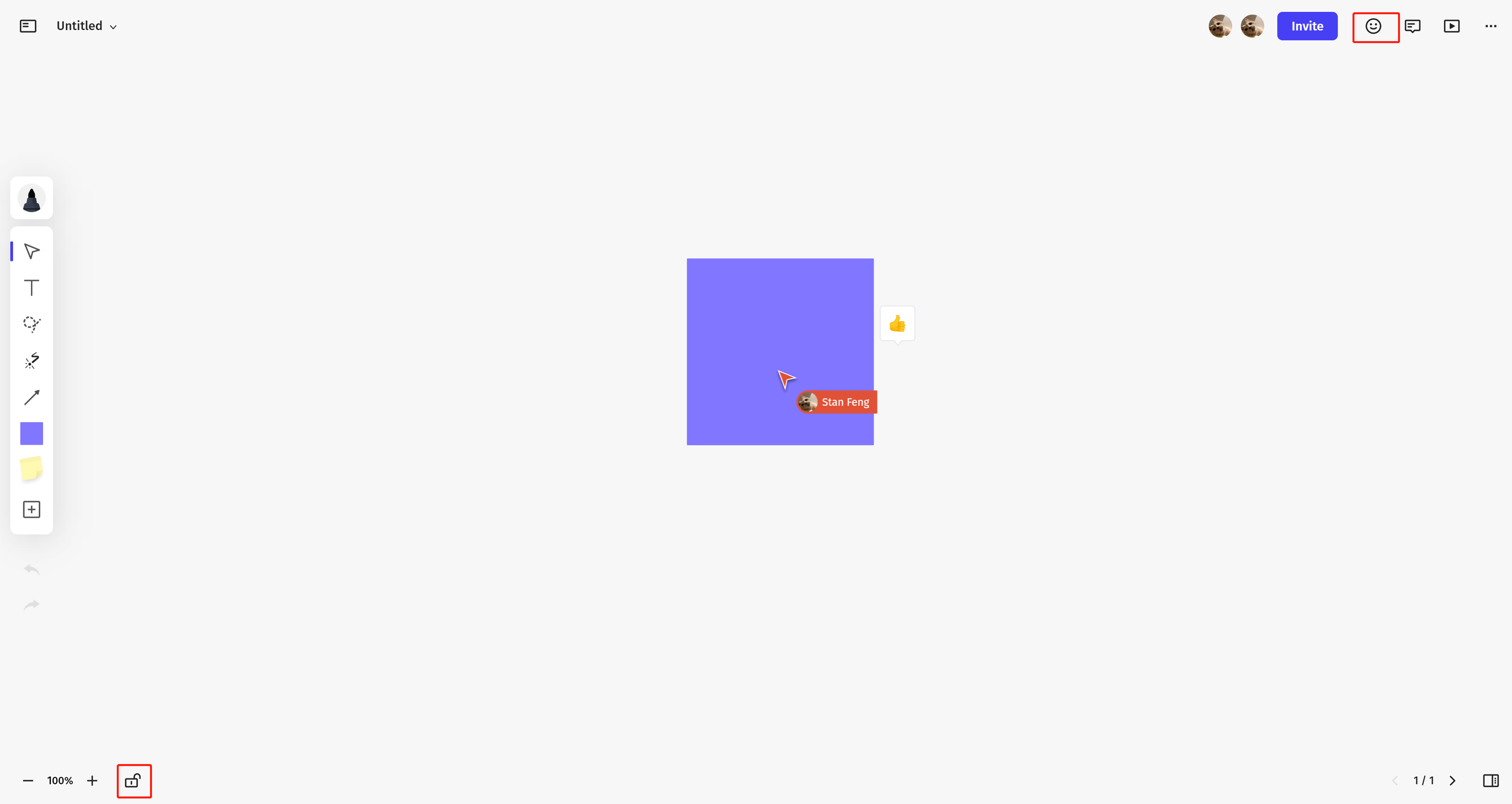 You can now lock the viewport in Canvas, so you don’t have to worry about accidentally moving or zooming in on the current view. Find the lock button at the bottom of your Canvas. - Real-time Cursor