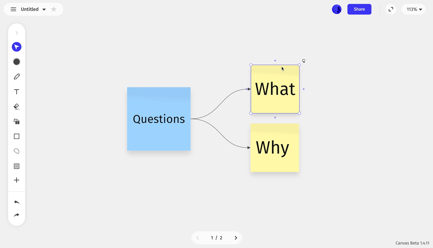This new feature allows you to change between shapes, sticky notes, and text. In addition, you can draw connections between all of the objects to empower your flow chart.