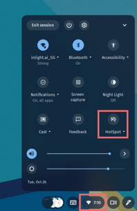 - Go click the time icon at the bottom right corner of the Vibe screen to bring up the control panel. To turn on the hotspot of your Vibe board, tap on the HotSpot icon.