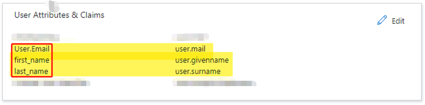 After setting up attribute mapping, your User Attributes & Claims in Azure AD should look like this: