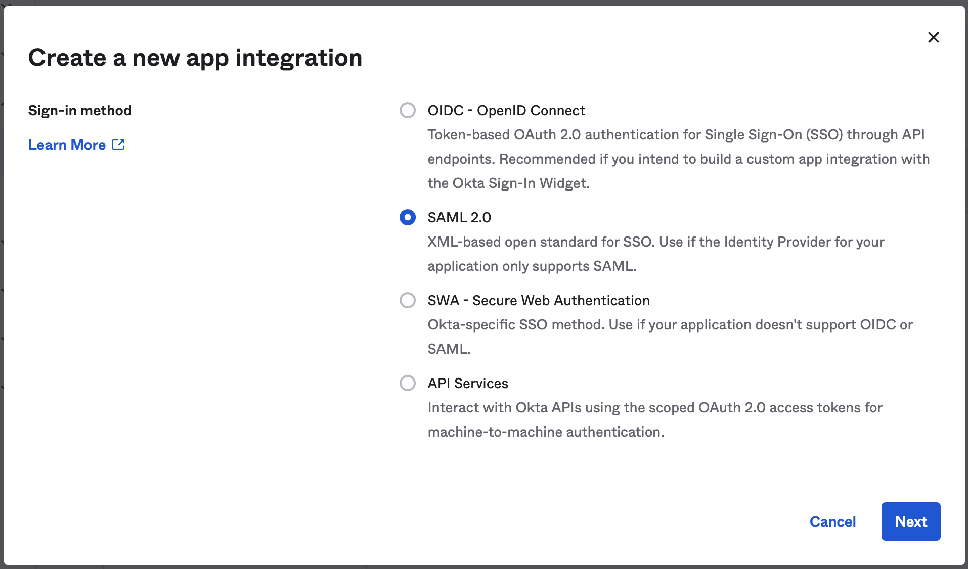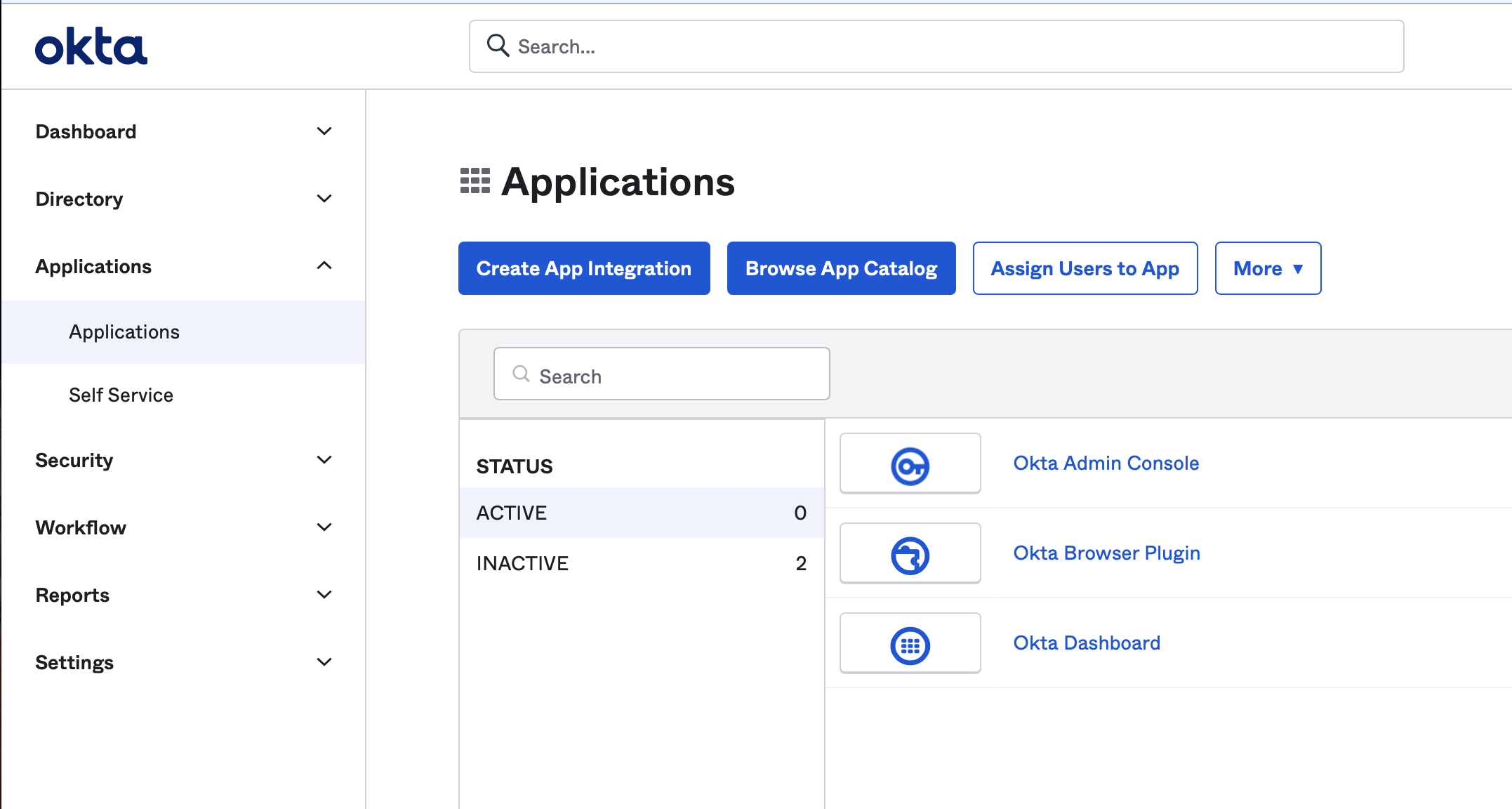 Create an App Integration for Vibe first. In your Okta Admin console, navigate to Applications, and click "Create App Integration" button.