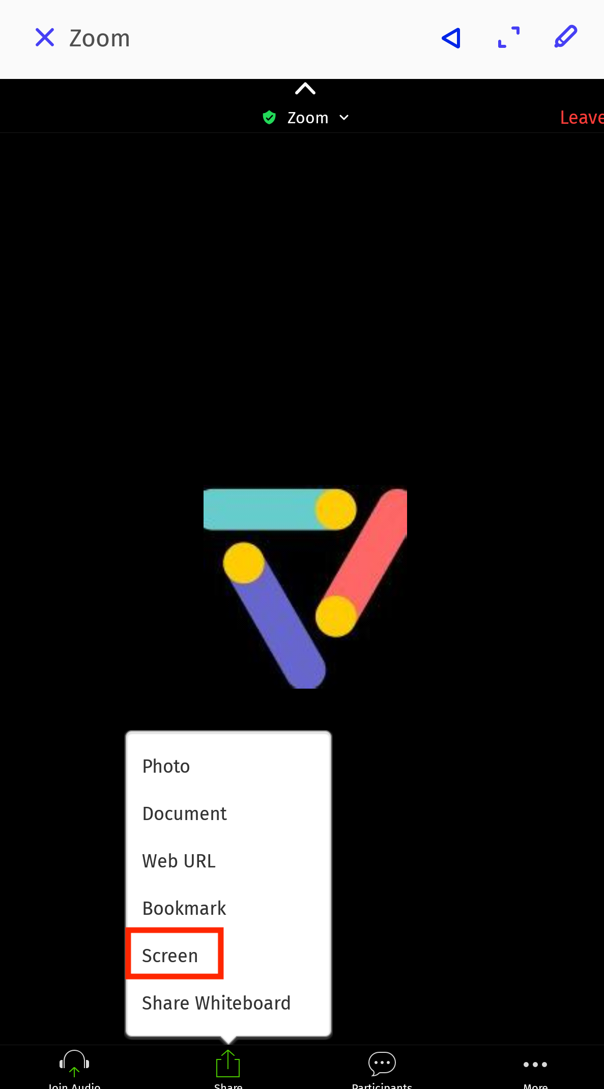 Some users are experiencing a problem when they try to share Vibe's whiteboard content in Zoom conference, the share options do not include the option to share screen.